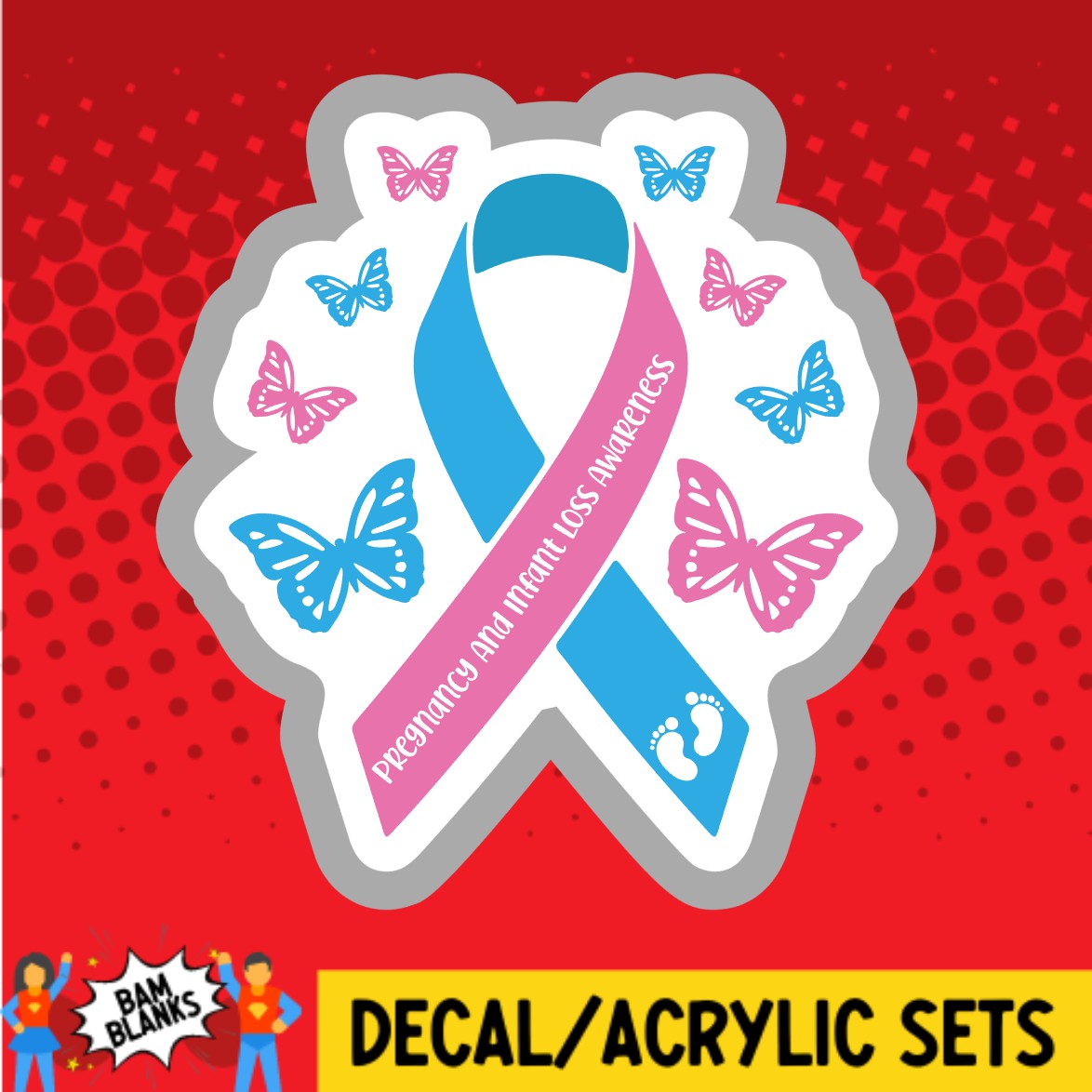 Pregnancy and Infant Loss Awareness Ribbon with Butterflies - DECAL AND ACRYLIC SHAPE #DA03378